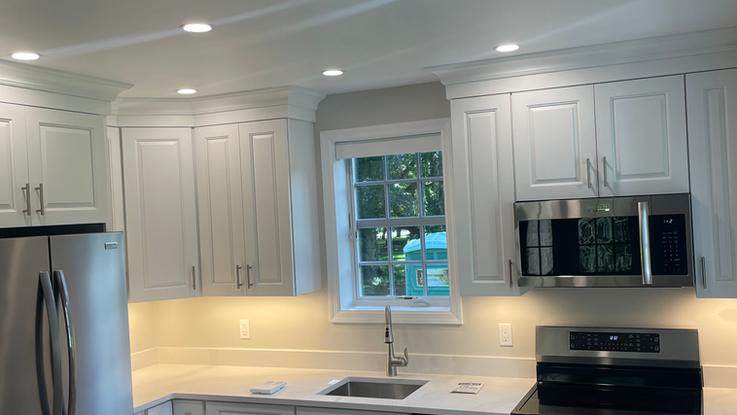 Explore our kitchen project gallery showcasing expert electrical installations, including lighting, outlets, oven connections, and smoke detectors, designed to enhance both functionality and safety.
